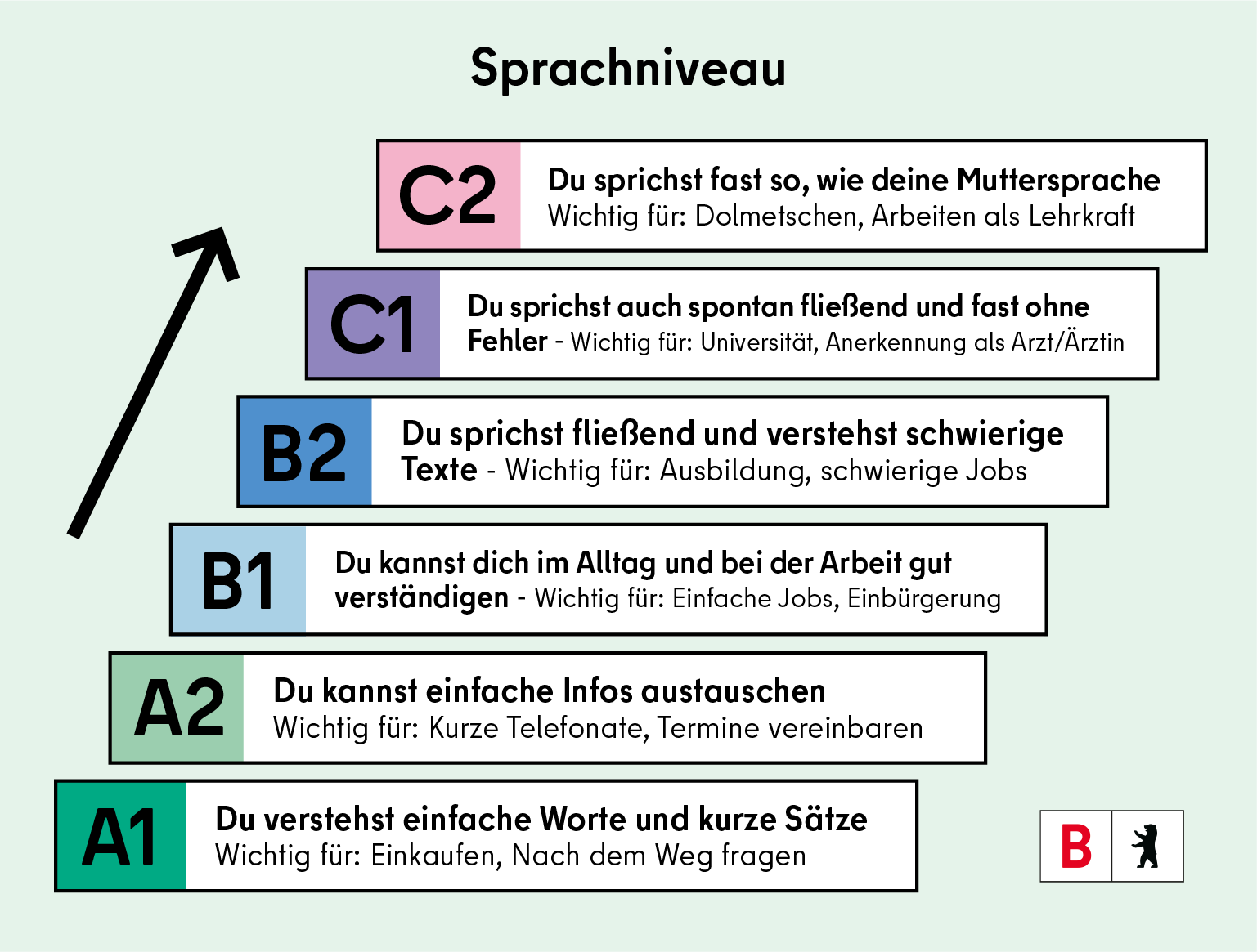 Если вы живёте в Берлине и учите немецкий, вы можете сдать экзамен на знание языка. Таким образом вы сможете доказать, насколько хорошо вы говорите, читаете, понимаете и пишете по-немецки. Для многих целей нужно иметь действительный Sprachzertifikat (языковой сертификат).